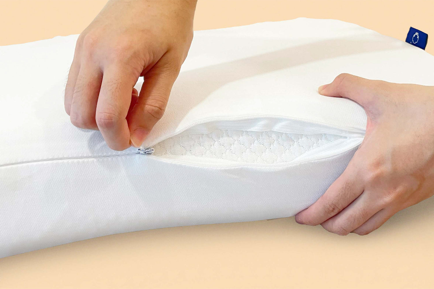 This springy case was uniquely designed to perfectly fit the pillow's shape and leave no gaps behind! In results, bye bye overheating & stuffiness~